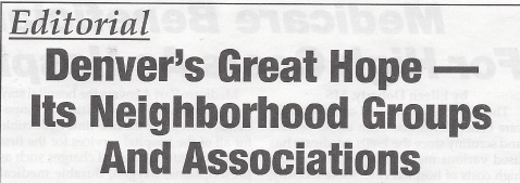 Denver has been described as a city of neighborhoods. It has 78 recognized neighborhoods and many more registered neighborhood associations. There is even an umbrella organization called INC (Inter-Neighborhood Cooperation). Because candidates when running for City Council court and are always deferential to neighborhood associations, many everyday citizens think that their neighborhood associations are highly influential regarding the actions of their elected representatives. In the last few years, neighborhood associations from Cherry Creek North to Hilltop to Mayfair to Congress Park to Crestmoor Park and across the City have had their innocence badly shattered.